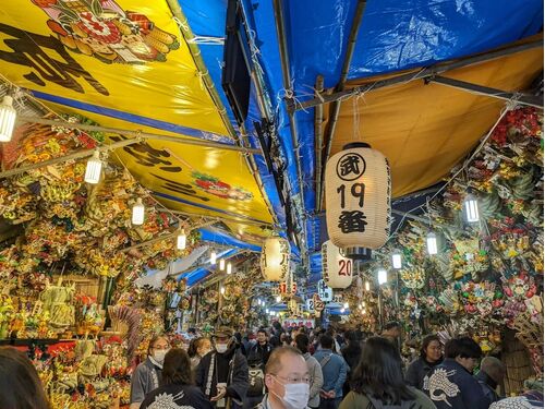 「関東三大酉の市」の一つである花園神社の酉の市で縁起熊手を購入しました。久しぶりの酉の市でしたが賑わいを楽しむことができ、伝統行事の良さを体感することができました。